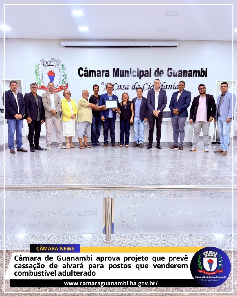 A Câmara Municipal de Guanambi aprovou, na sessão desta terça-feira (7), o Projeto de Lei nº 019/2026, de autoria do vereador André Moitinho, que estabelece a cassação do alvará de funcionamento de postos revendedores que comercializarem combustíveis adulterados no município. A proposta determina que a Administração Pública Municipal deverá cassar o Alvará de Licença de […]