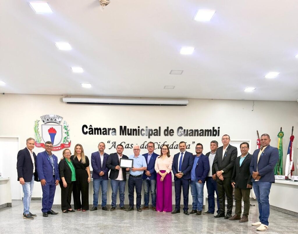 Após a sessão, foi entregue uma Moção de Aplausos, proposta pelo vereador Belonízio Nunes (Tião Nunes), ao agropecuarista Luiz Carlos Fernandes de Souza, em reconhecimento ao apoio dado ao Projeto de Irrigação do Vale do Iuiú, iniciativa considerada fundamental para o desenvolvimento regional, a ampliação da agricultura familiar e a melhoria das condições de vida dos pequenos produtores.
