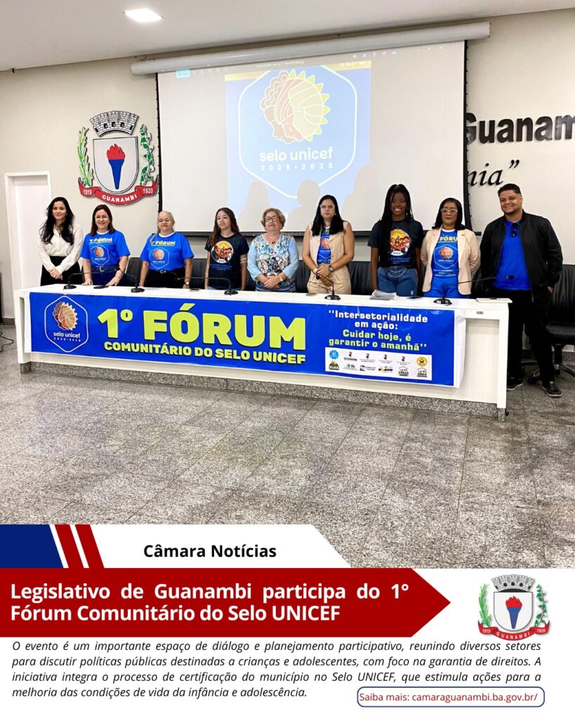 Nesta sexta-feira (28), os vereadores Eponina Gomes e Edmilson Santos representaram o Poder Legislativo no 1° Fórum Comunitário Selo UNICEF, realizado pela Prefeitura de Guanambi, por meio da Secretaria de Assistência Social e da Comissão Intersetorial do Selo UNICEF. O encontro trouxe como tema: “Intersetorialidade em ação: Cuidar hoje é garantir o amanhã”.